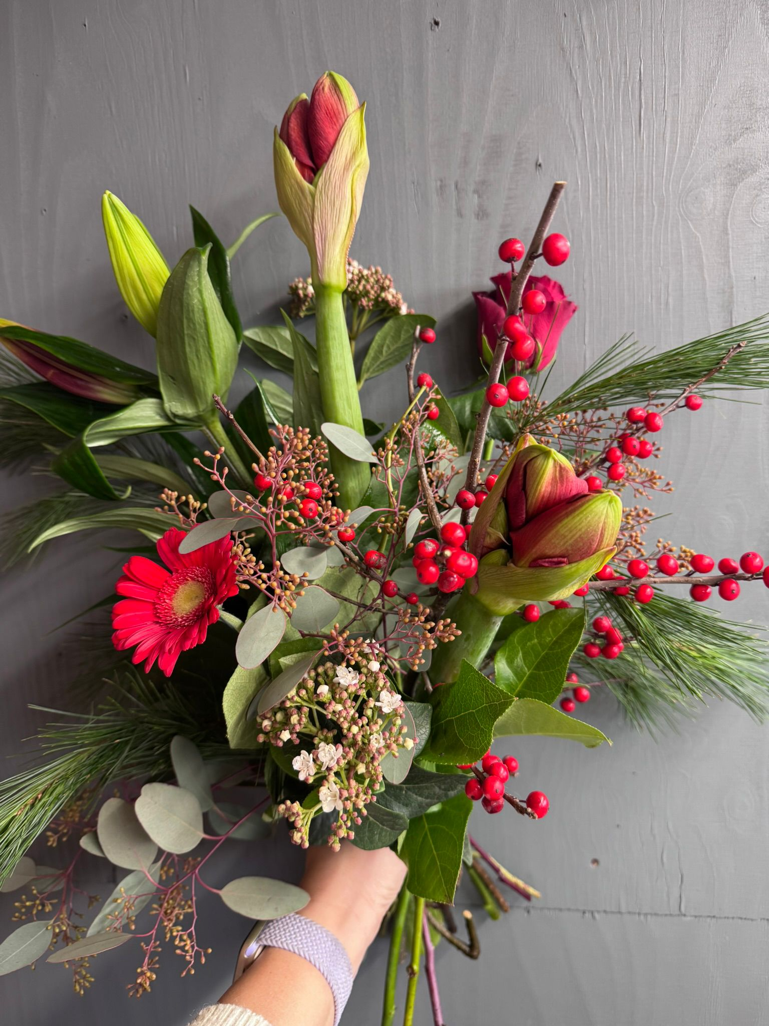 Een mooi & stijlvol boeket vol met kerstbloemen