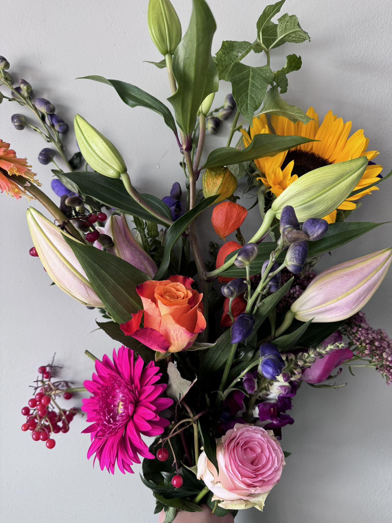 Elke week werk ik met de mooiste bloemen, vers van de leverancier. Het is dan ook elke week een verrassing wat voor boeket jij in ontvangst neemt.