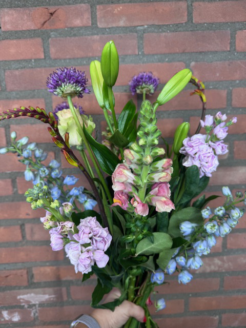 Elke week werk ik met de mooiste bloemen, vers van de leverancier. Het is dan ook elke week een verrassing wat voor boeket jij in ontvangst neemt.